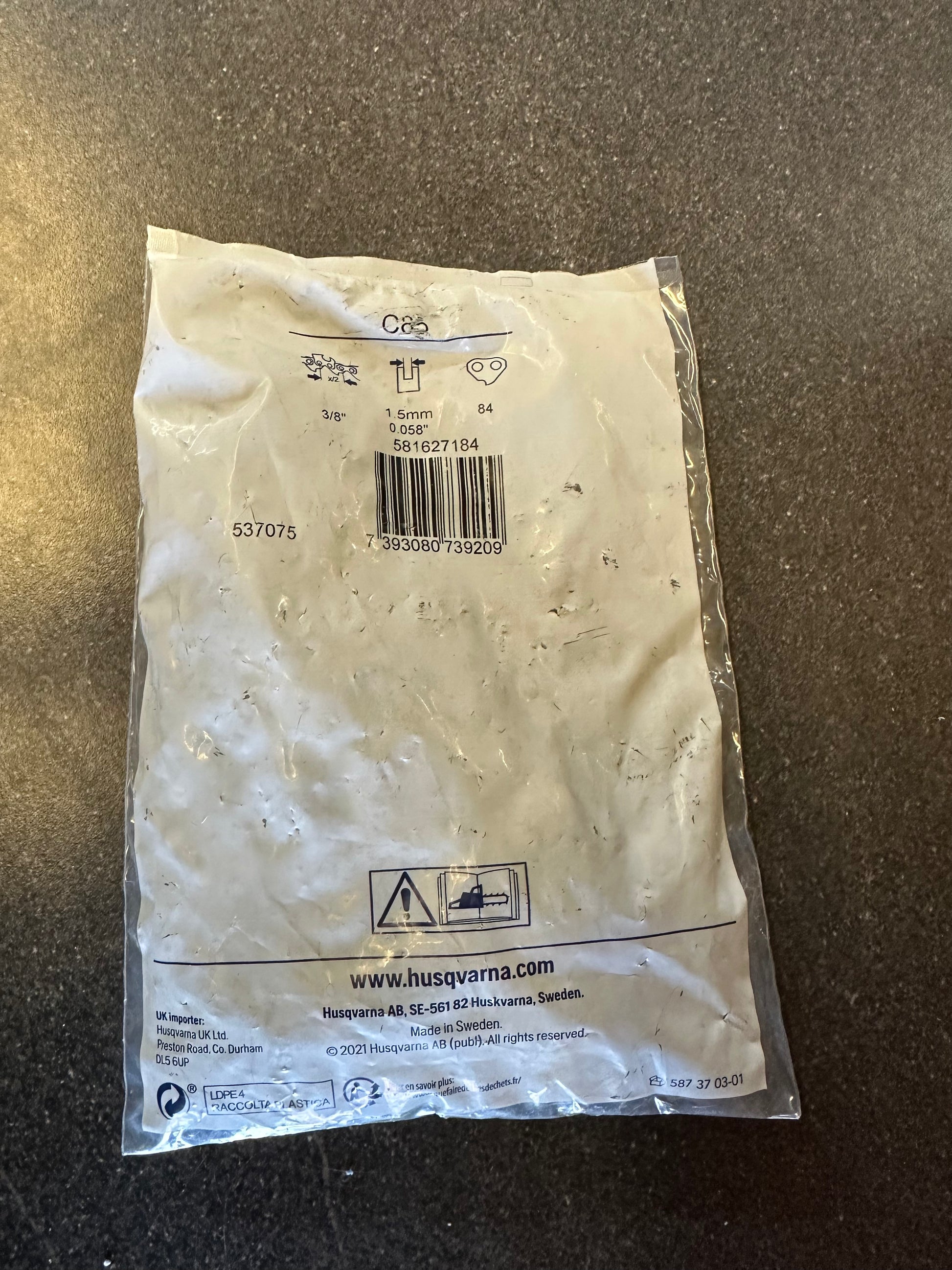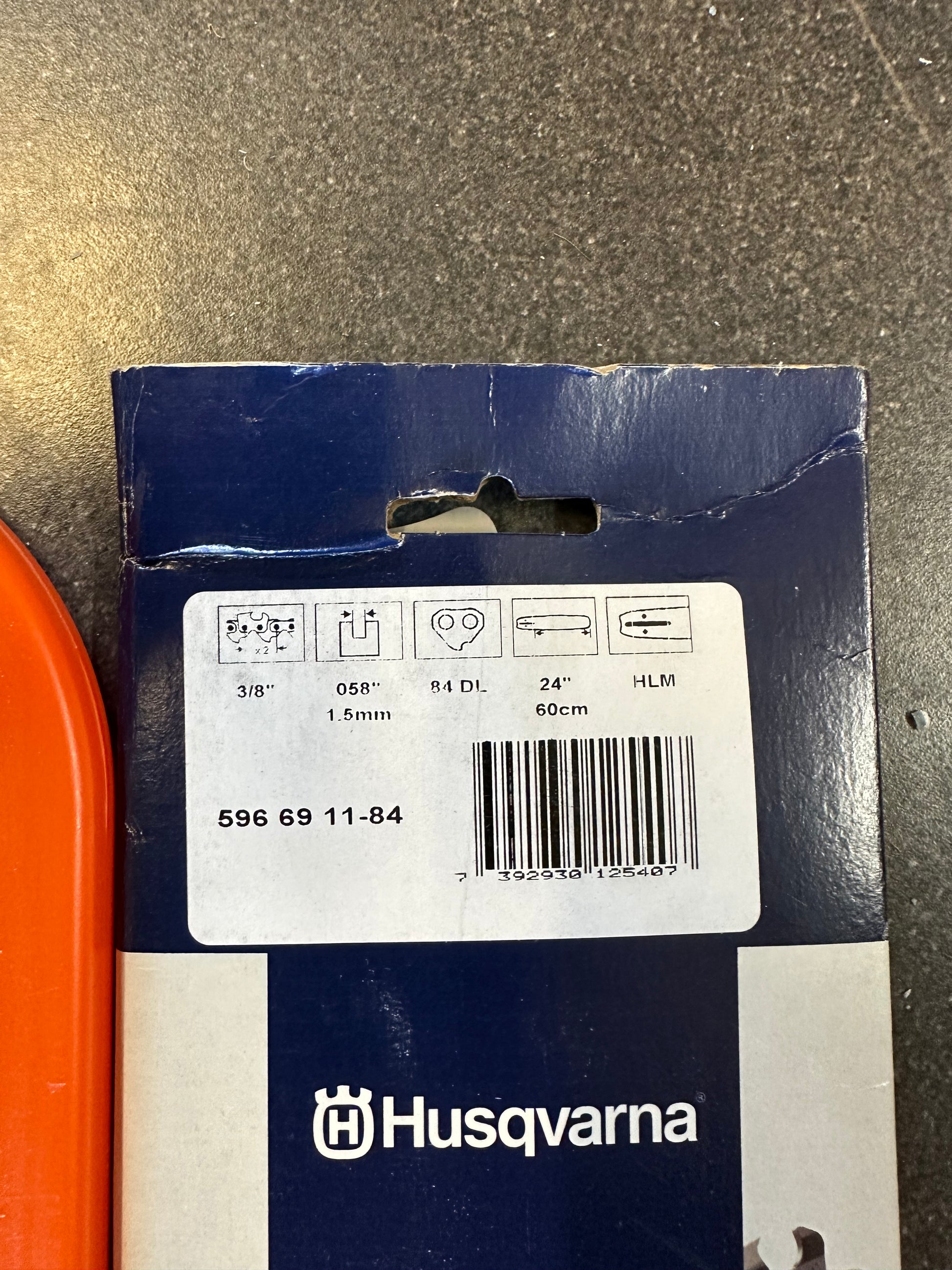 Husqvarna 24” X-tough bar with C85 chain. 3/8 1.5mm D009 fitment. Comes with scabbard.